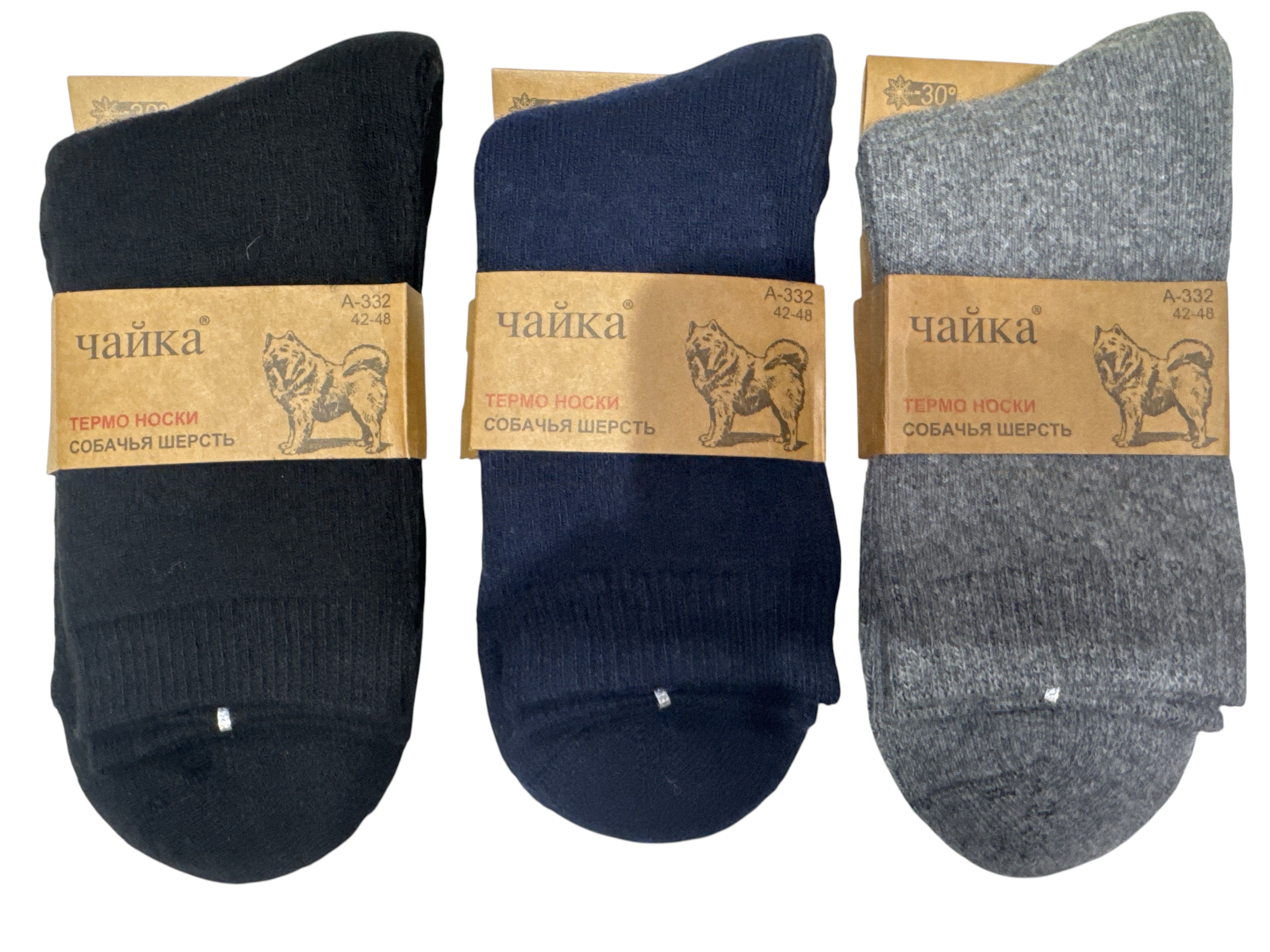 Теплі термо-шкарпетки «Чайка» з собачої шерсті (42–48) 332