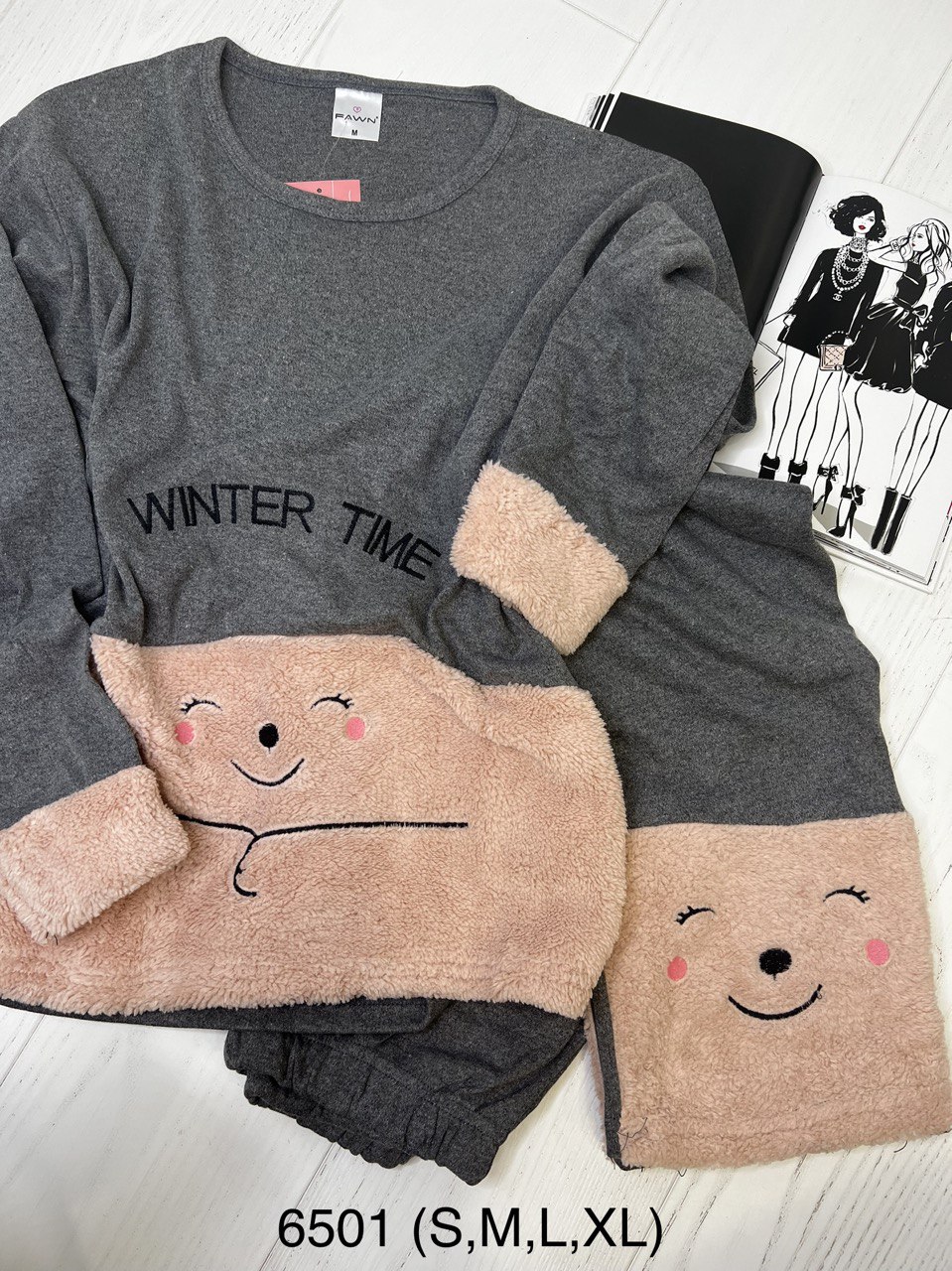 Піжама жіноча х/б (Кофта, довгий рукав + штани),FAWN 6501 Сіро персиковий