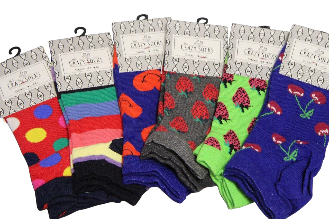 Crazy MenШукаєте спосіб урізноманітнити свій гардероб та підняти настрій? Виберіть набір яскравих шкарпеток MC Crazy Socks! Кожна пара має оригінальний кольоровий візерунок – від строкатих смужок і великих горошин до веселих ягід і грибочків. Вони чудово підходять для щоденного носіння, додаючи образу індивідуальності та позитиву.