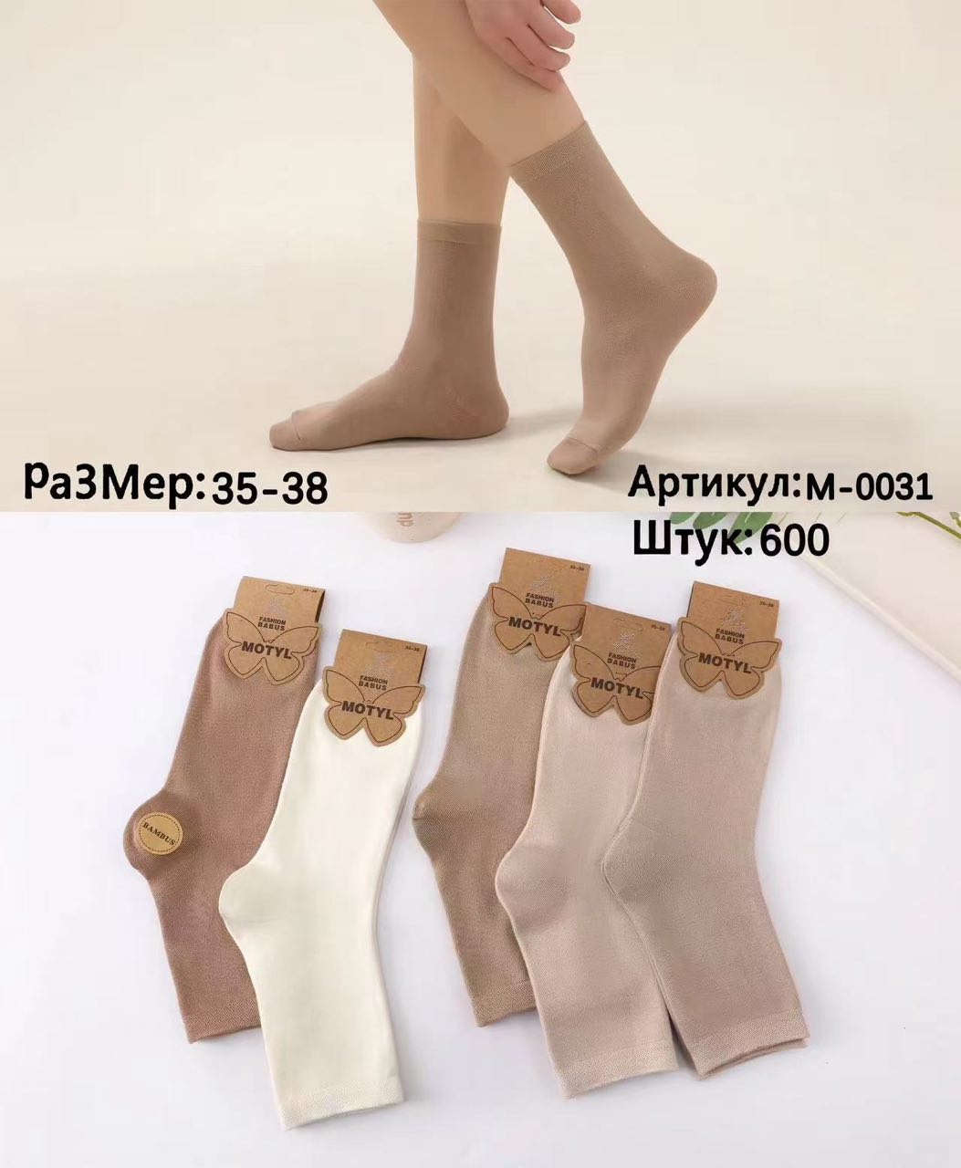 MOTYLЖіночі шкарпетки MOTYL M-0031 — універсальна модель із м’якої бавовняної тканини.
