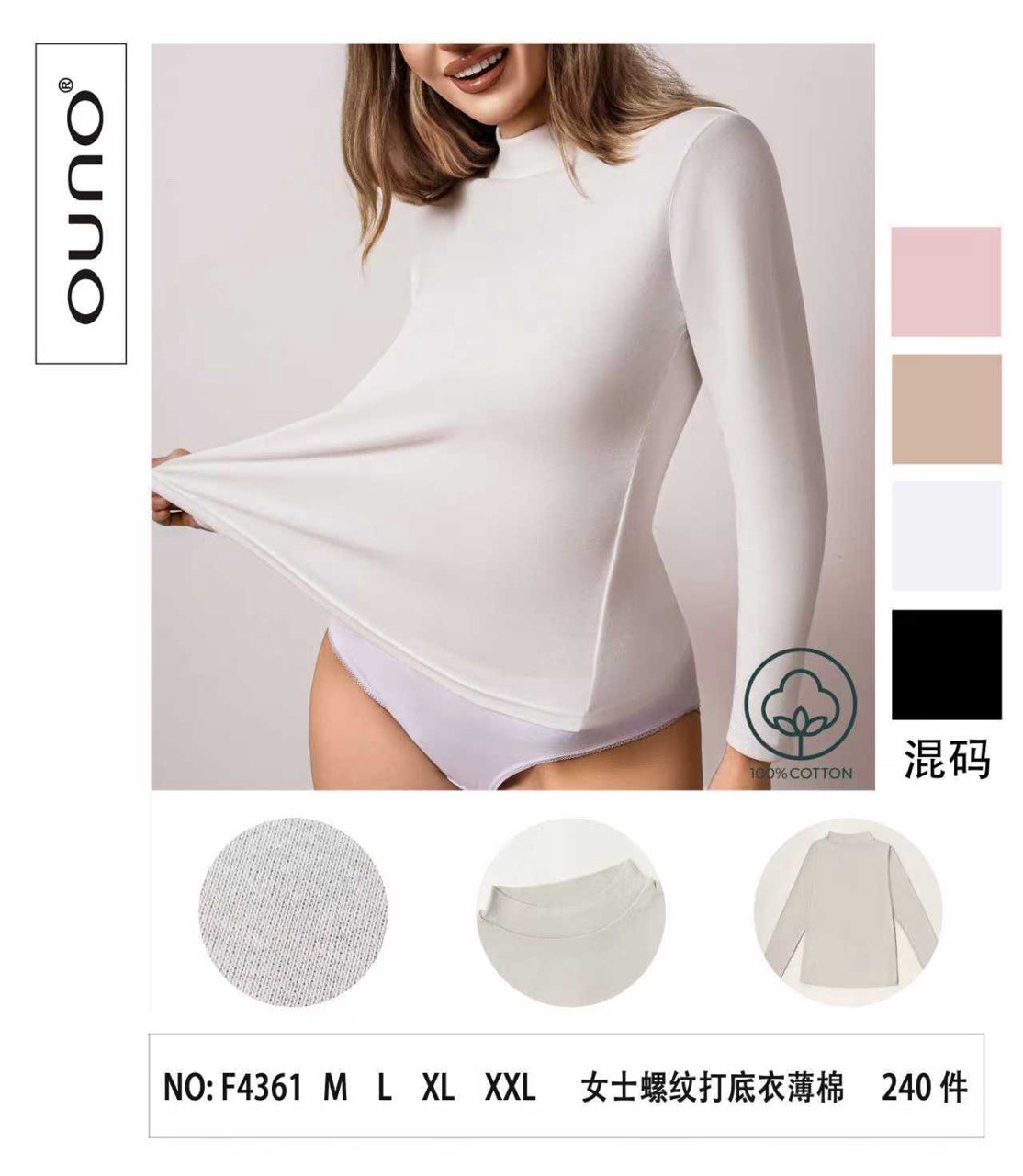 Жіноче боді Ouno F4361 з довгим рукавом (бавовна, базова модель)