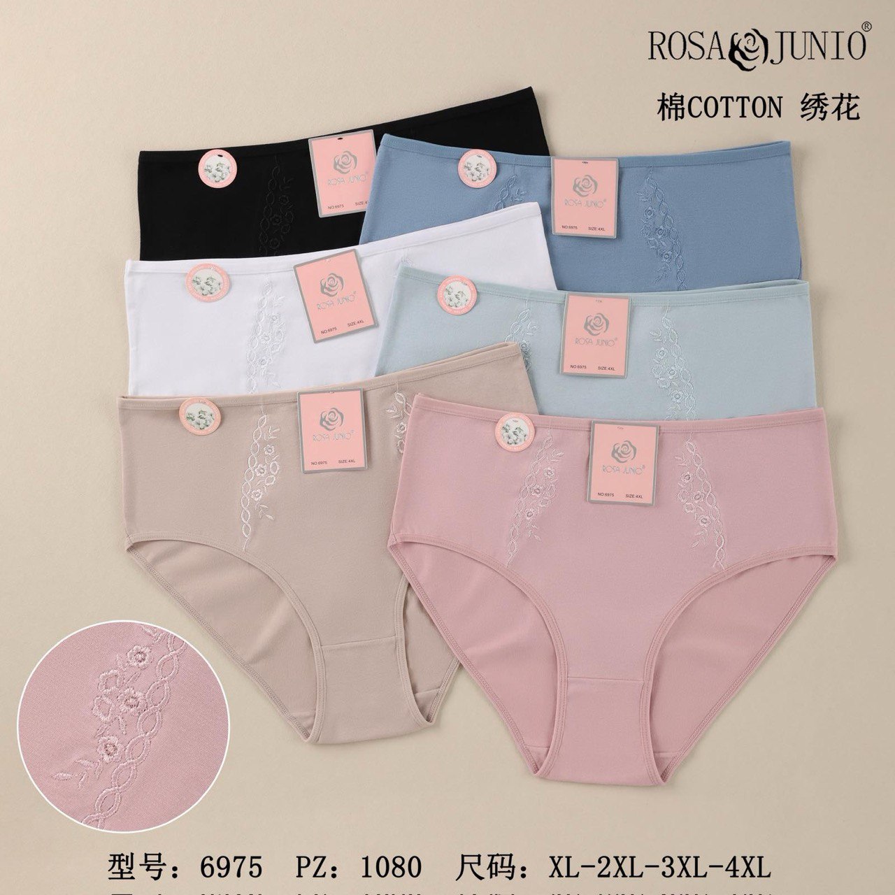 Rosa JunioЖіночі трусики ROSA JUNIO, модель 6977 — комфортна та практична білизна з натуральної бавовни, створена спеціально для щоденного носіння. М’яка дихаюча тканина добре підходить для чутливої шкіри, не парить і зберігає форму після прання. Класичний крій із середньою посадкою та ніжною мереживною обробкою забезпечує зручність і жіночний вигляд. Квіткові принти виглядають акуратно та охайно.