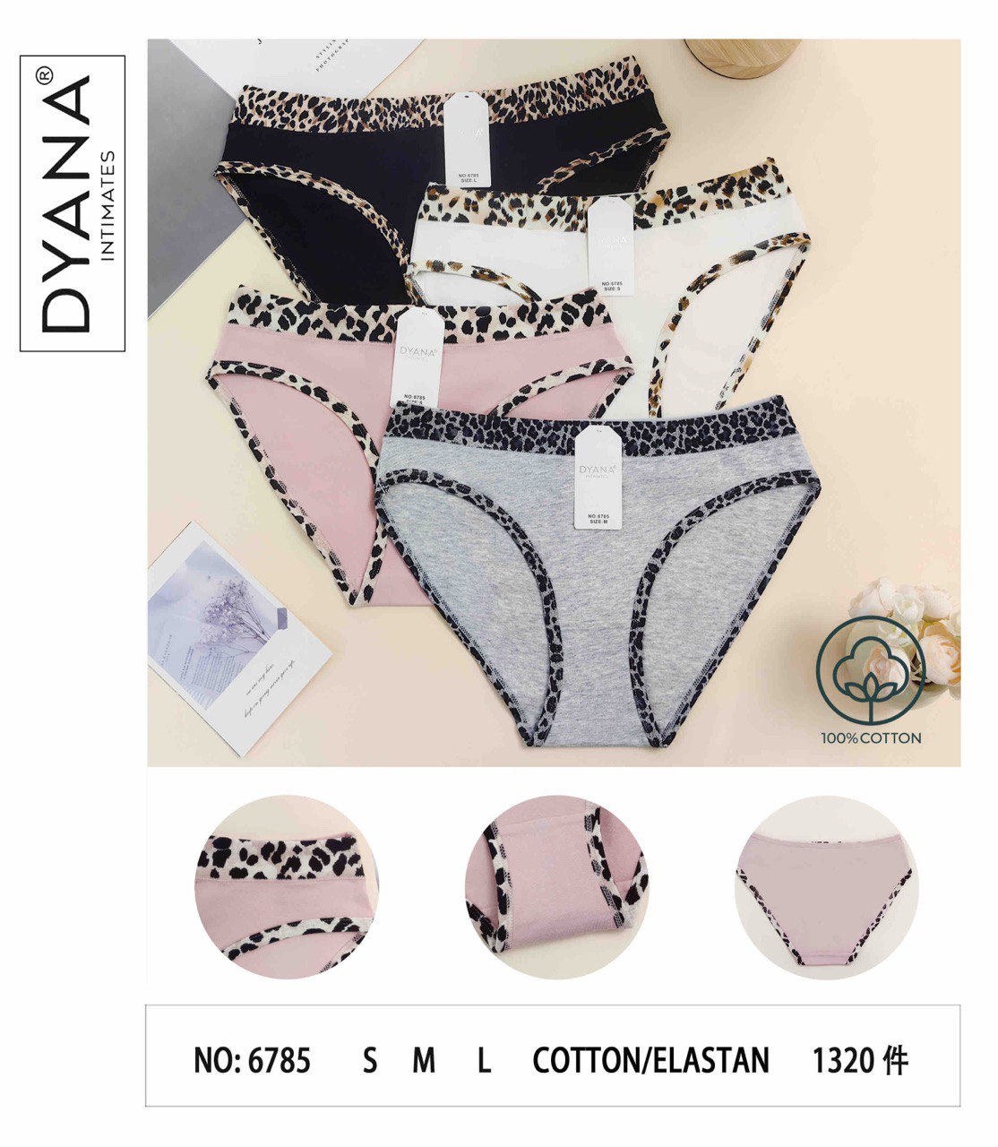 DyanaЖіночі бавовняні трусики DYANA 6785 — комфортна щоденна модель із стильним леопардовим кантом. Виготовлені з м’якої натуральної бавовни з додаванням еластану, добре тягнуться, приємні до тіла та ідеально підходять для щоденного носіння.