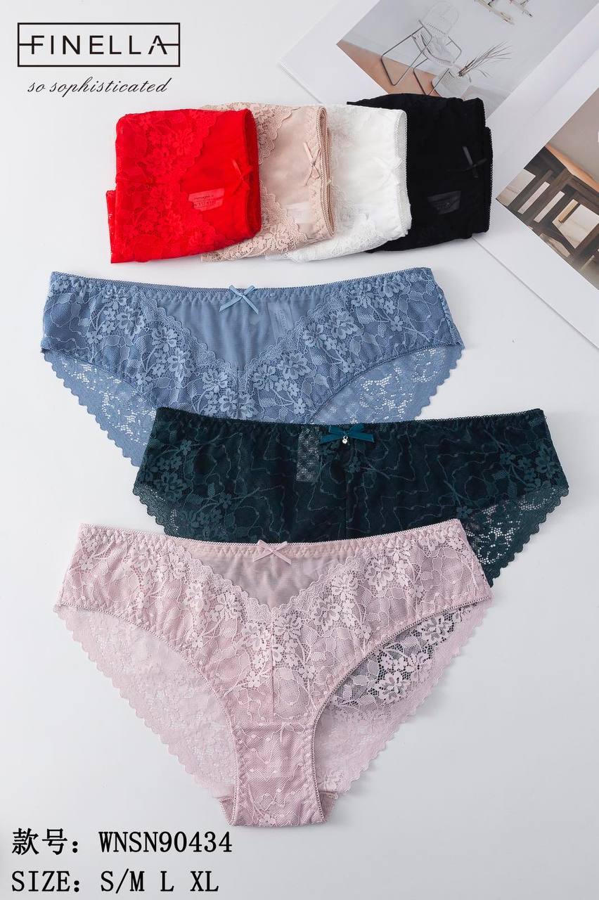 Жіночі мереживні трусики Finella WNSN90433 (опт) – елегантна модель з ніжного квіткового мережива та м’якої тканини, яка дарує комфорт і впевненість.