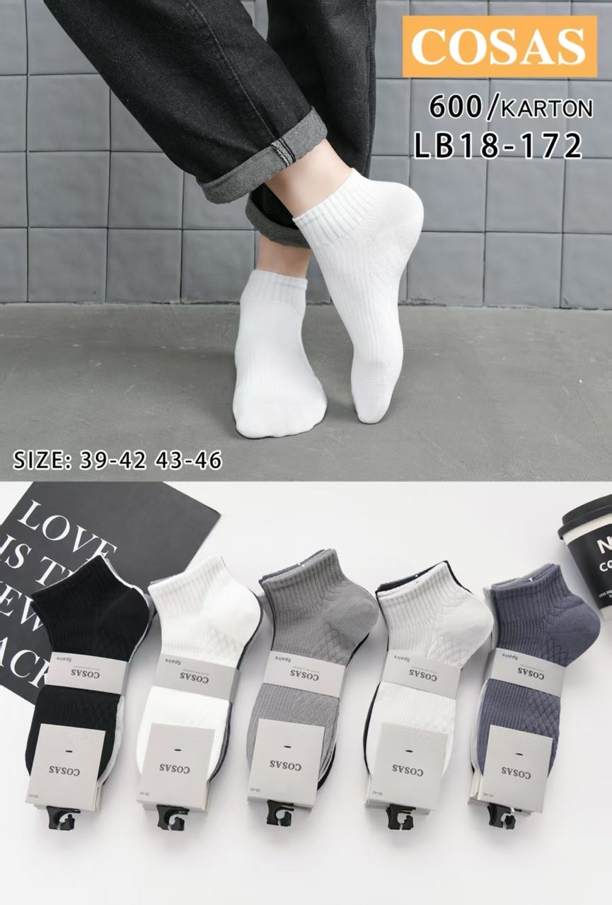 CosasЯкісні чоловічі короткі шкарпетки COSAS — ідеальний варіант для щоденного носіння. Завдяки зручній посадці та еластичній резинці вони добре тримаються на нозі, не сповзають і не перетискають. Підходять як для повсякденного стилю, так і для занять спортом.