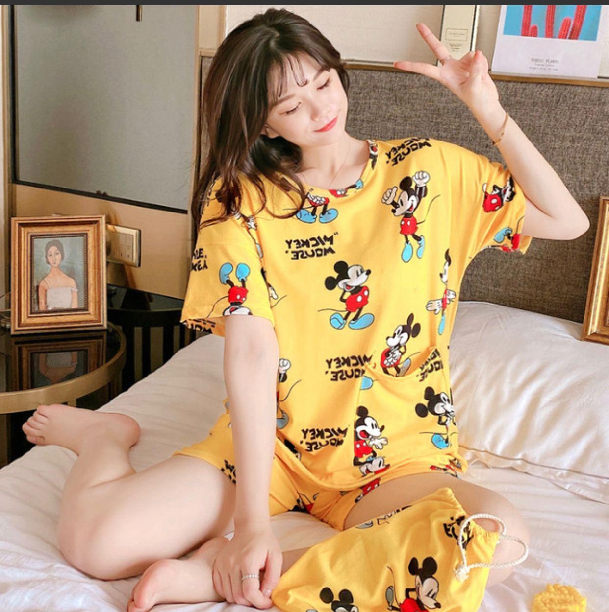 Молодежная пижама из шорт с футболкой MICKEY MOUSE . Светлая футболка с прикольным рисунком