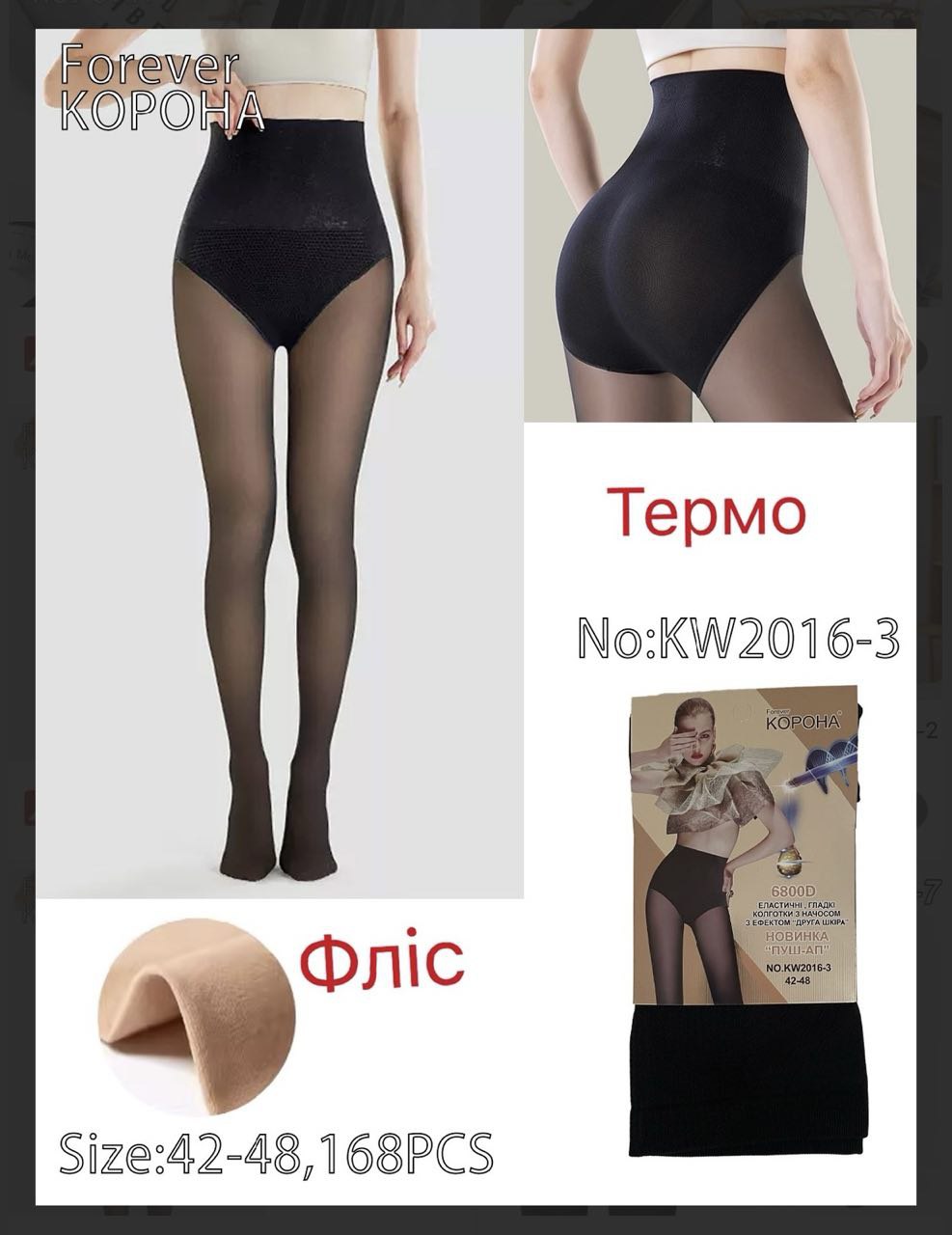 КОРОНАТеплі термоколготки з флісом Forever Корона KW2016-3 — це ідеальний варіант для холодного сезону. Модель має високу посадку та щільний коригуючий пояс, який красиво формує лінію талії та забезпечує додаткову підтримку. Зовні колготки виглядають як класичні тонкі, але всередині — м'який та приємний фліс, що дарує комфорт і тепло навіть у мороз.