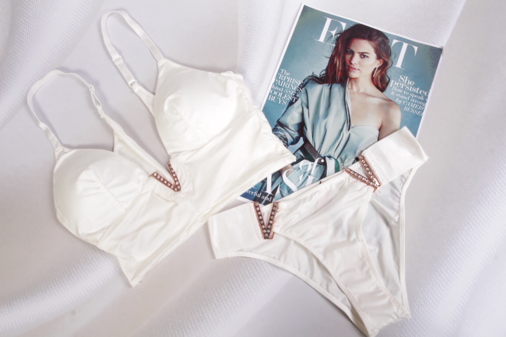Гладкий комплект со стразами , бюстгальтер без паралона, бретели регулируемые, трусы американка.