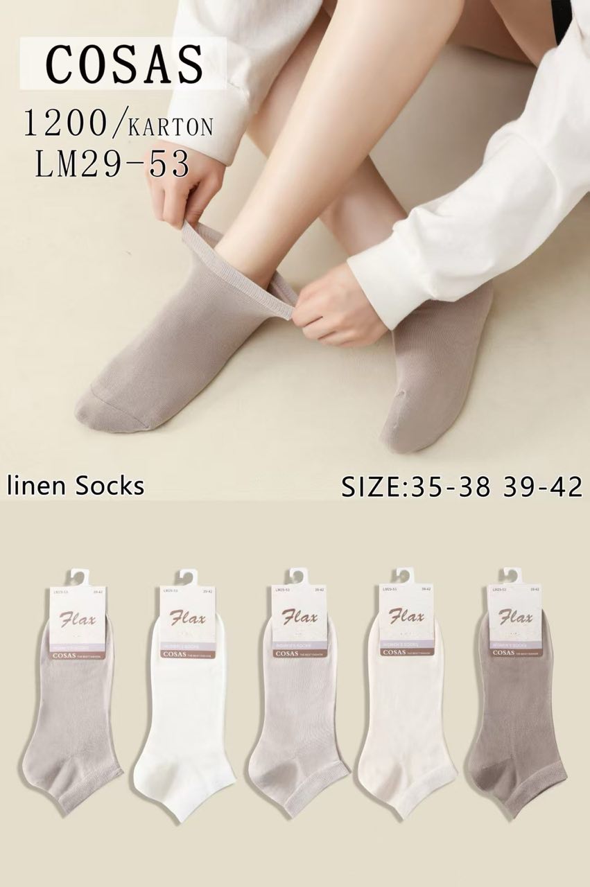 CosasЖіночі шкарпетки з натурального льону – ідеальний вибір для теплої пори року. Легкі, дихаючі та приємні до тіла, вони забезпечують комфорт протягом усього дня. Завдяки натуральним волокнам льону шкарпетки добре пропускають повітря, допомагають підтримувати оптимальний мікроклімат і зменшують потовиділення.