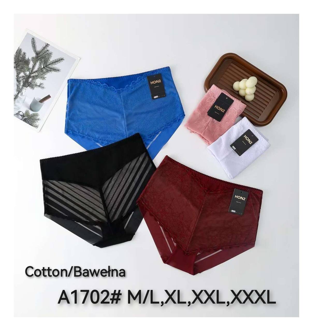 Женские трусы HON2 A1702 с высокой посадкой – комфортная хлопчатобумажная модель с кружевом и сетчатыми вставками.