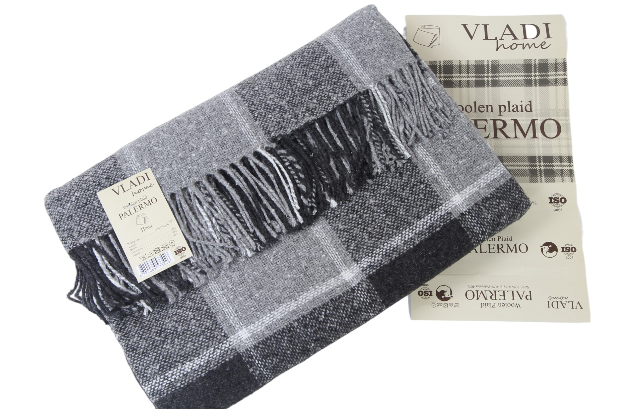 VLADIПлед "Palermo" от ТМ "Vladi" имеет размеры 170x210 см, артикул SOFA/07, цвет белый, дымчатый и светло-антрацитовый.